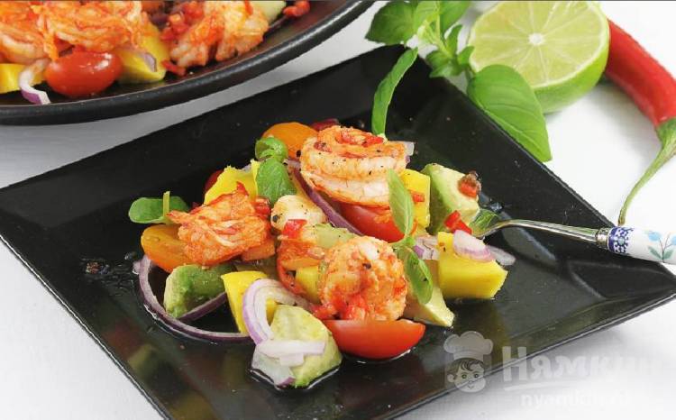Авокадо с креветками и манго