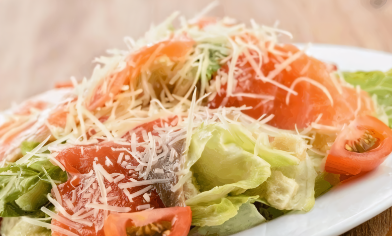 5. Подавайте салат Цезарь с лососем немедленно, чтобы он был еще теплым.