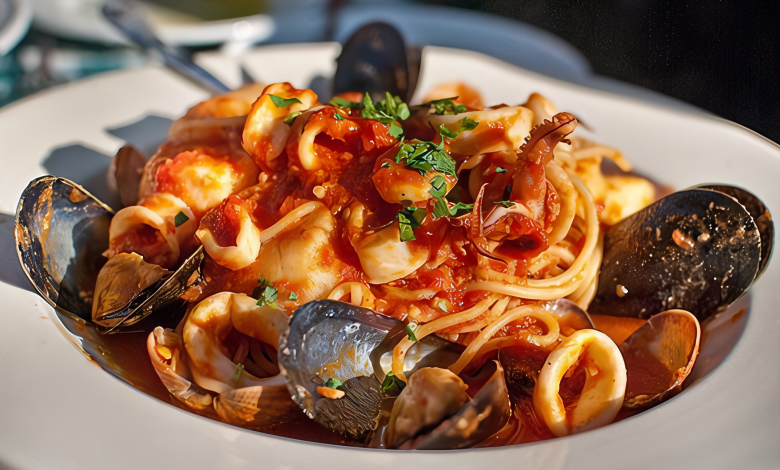 Для приготовления спагетти с морепродуктами и соусом вам понадобятся следующие ингредиенты: спагетти — 400 г, мидии — 300 г, кальмары — 200 г, креветки — 200 г, чеснок — 3 зубчика, лук репчатый — 1 шт., оливковое масло — 4 ст. л., петрушка — 1 пучок, сливки 20% — 200 мл, вино белое сухое — 100 мл, специи по вкусу (соль, перец, базилик, орегано).