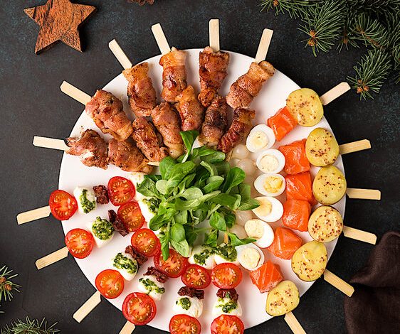 Еще один способ удивить гостей – это необычная форма закусок. Забудьте о привычных канапе и кубиках сыра. Попробуйте подать креветки на мини-шпажках, сыр в виде шариков или лосось в виде розочек. Такие закуски не только вкусные, но и красиво выглядят на столе, создавая праздничное настроение.